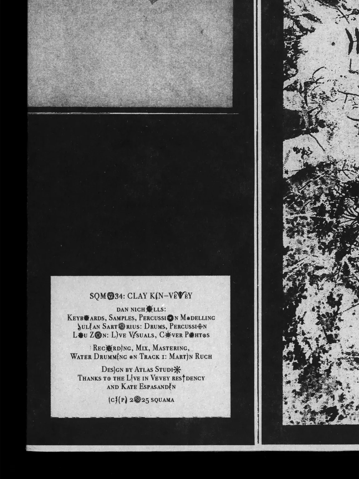 They had never planned to make an album yet through pure improvisation and spontaneity, Clay Kin have crafted Vevey. An album of seven tracks, distilled from over seven hours of improvised percussion and electronics. Recorded mostly outdoors––on pedalo boats, up mountains and deep in forests near the namesake Swiss town of Vevey, it is imbued with the soft fascination of birdsong, rushing water and chattering children.